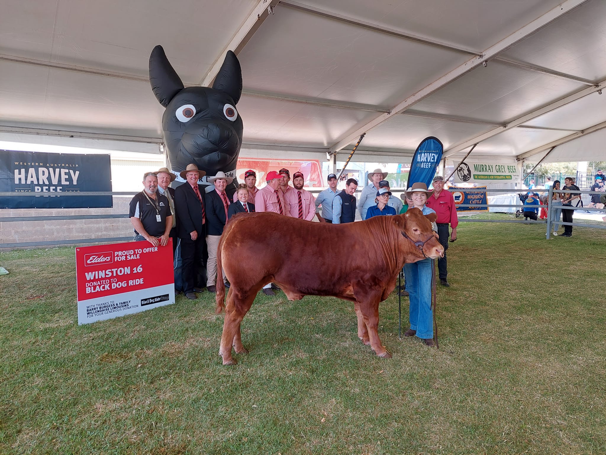 We are at the Perth Royal Show where the Steer bred by Barry Burgess sold at auction for a Black Dog record $16,600.00 with all proceeds going to Black Dog Ride.